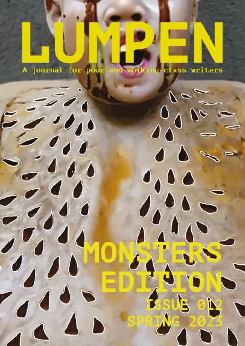 Wow! Well, in 2019 D. P. HUNTER WAS TALKING ABOUT HIS REALLY GOOD BOOK CHAV SOLIDARITY VERY MOVING. SOON HE STARTED UP THE JOURNAL BASED ON THIS DEFINITION FOR THE PUBLICATION OF POOR & WORKING-CLASS WRITERS. D. P. Hunter & i went to a conference in birmingham called ‘literature must fall’ at the impact hub on oxford street in birmingham which was really great and then i wrote a poem for the first issue of lumpen and then there was a lapse FOR a number of years and then i wrote more poems for lumpen: a journal for poor and working-class writers which you can find in issues eleven, guest-edited by fran lock, and twelve, with illustrations, and purchase here. there was a launch at freedom press bookshop in whitechapel on 1st december in 2022, where dorothy spencer made potent mulled wine while readings were given thank you.