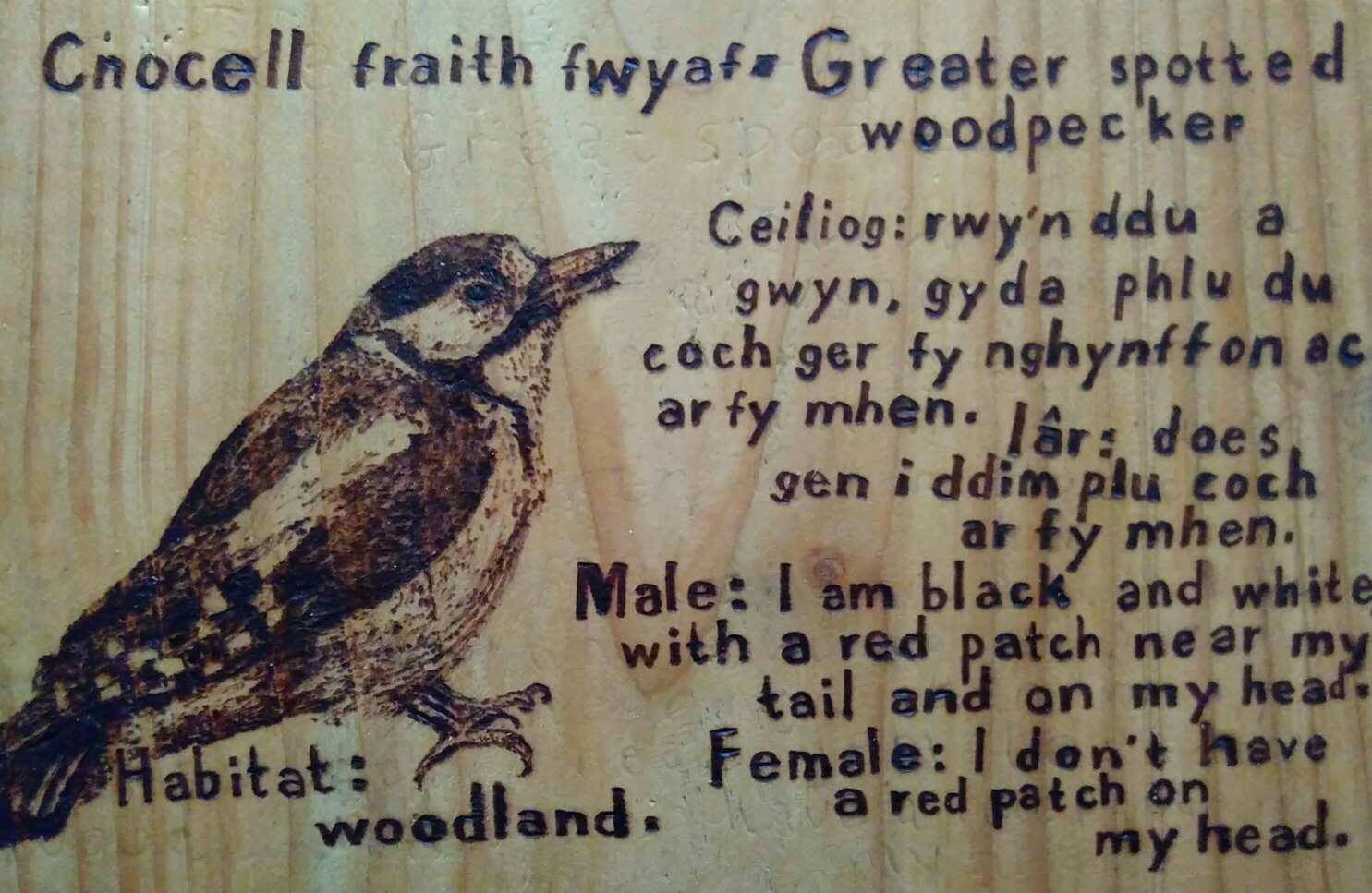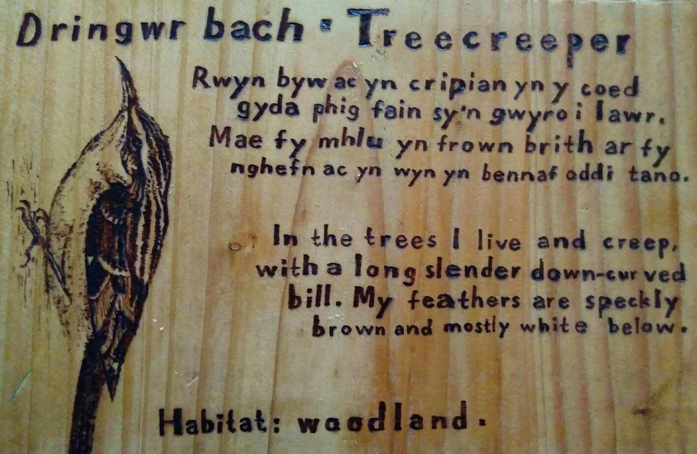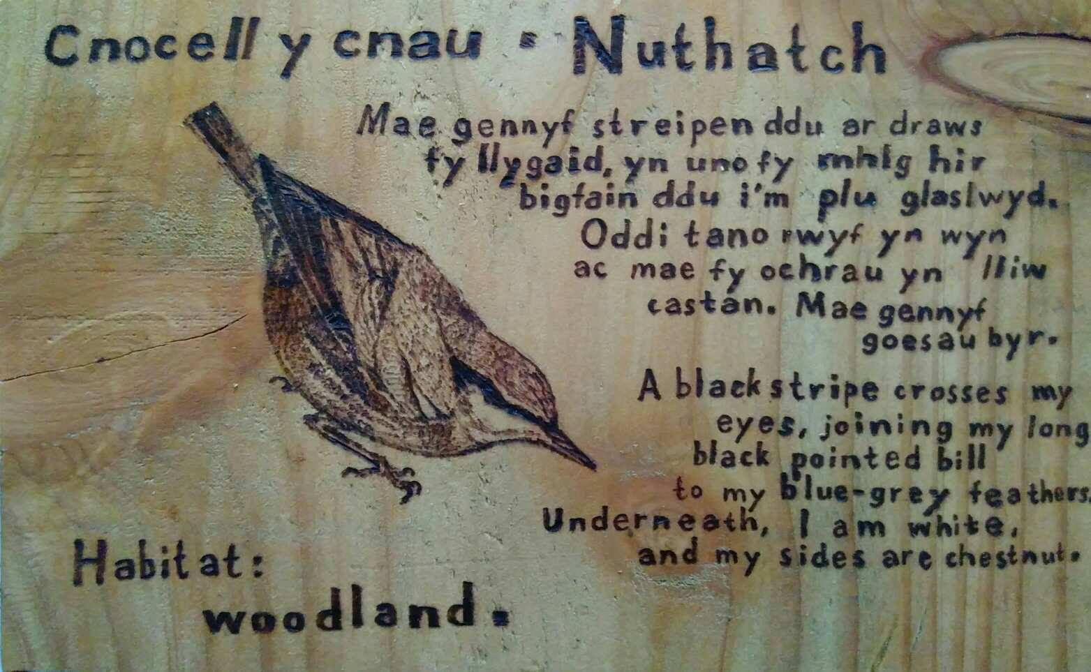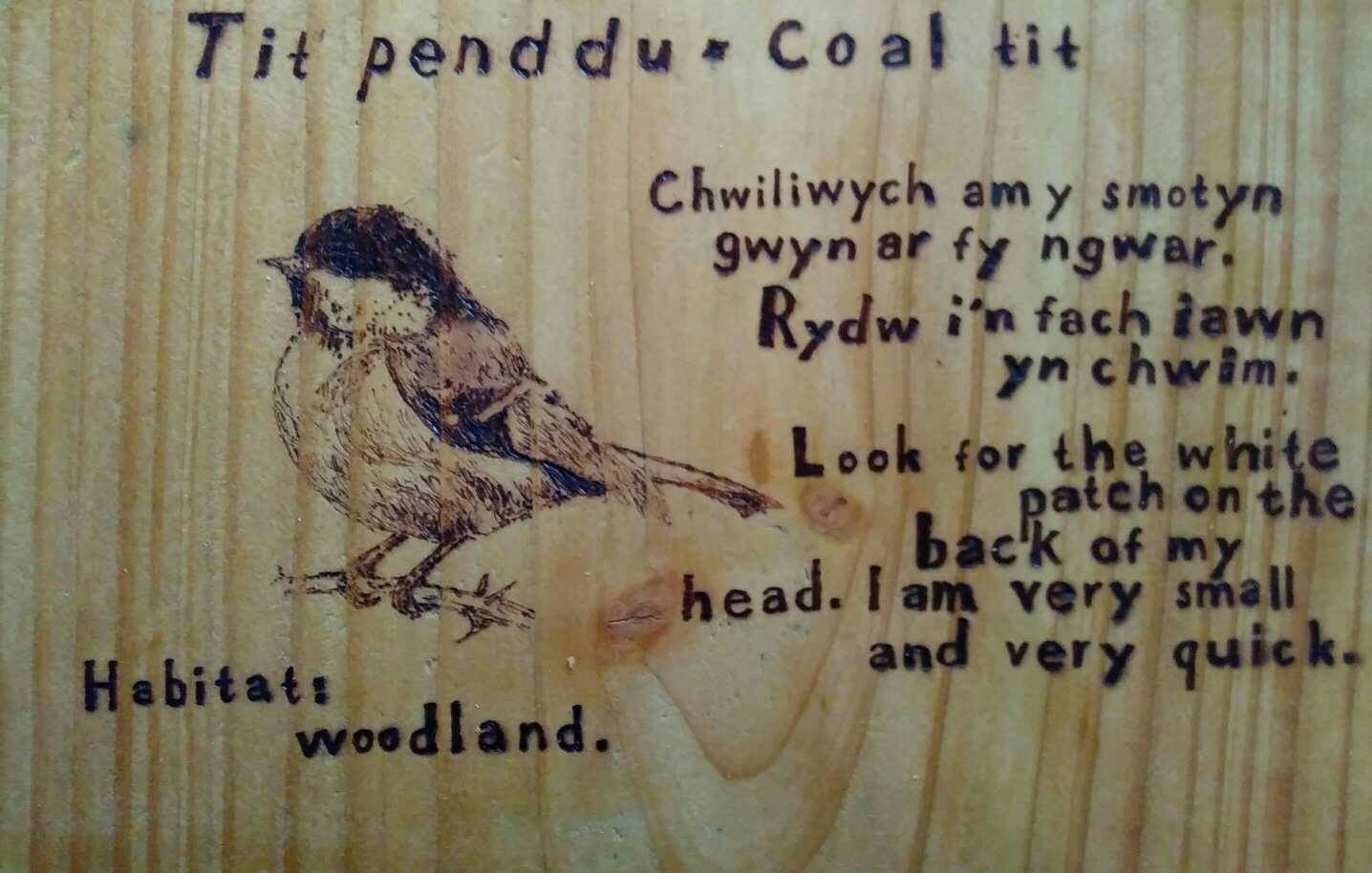 as a resident woodsman at the centre for alternative technology, where the anti-psychogeographer patrick keiller once worked, for six months across the winter i was entrusted to make a, b-ilingual, bird-identification display in collaboration with the rspb (Thank you to supervisors rob goodsell and petra weinmann). each bird went up in a small sitting-booth near the ‘heart’ of the centre, where birds gathered occasionally to be watched by visitors. my friend of the later house of virtue, meg stuart, painted the bird hide nearby, in red and yellow.
