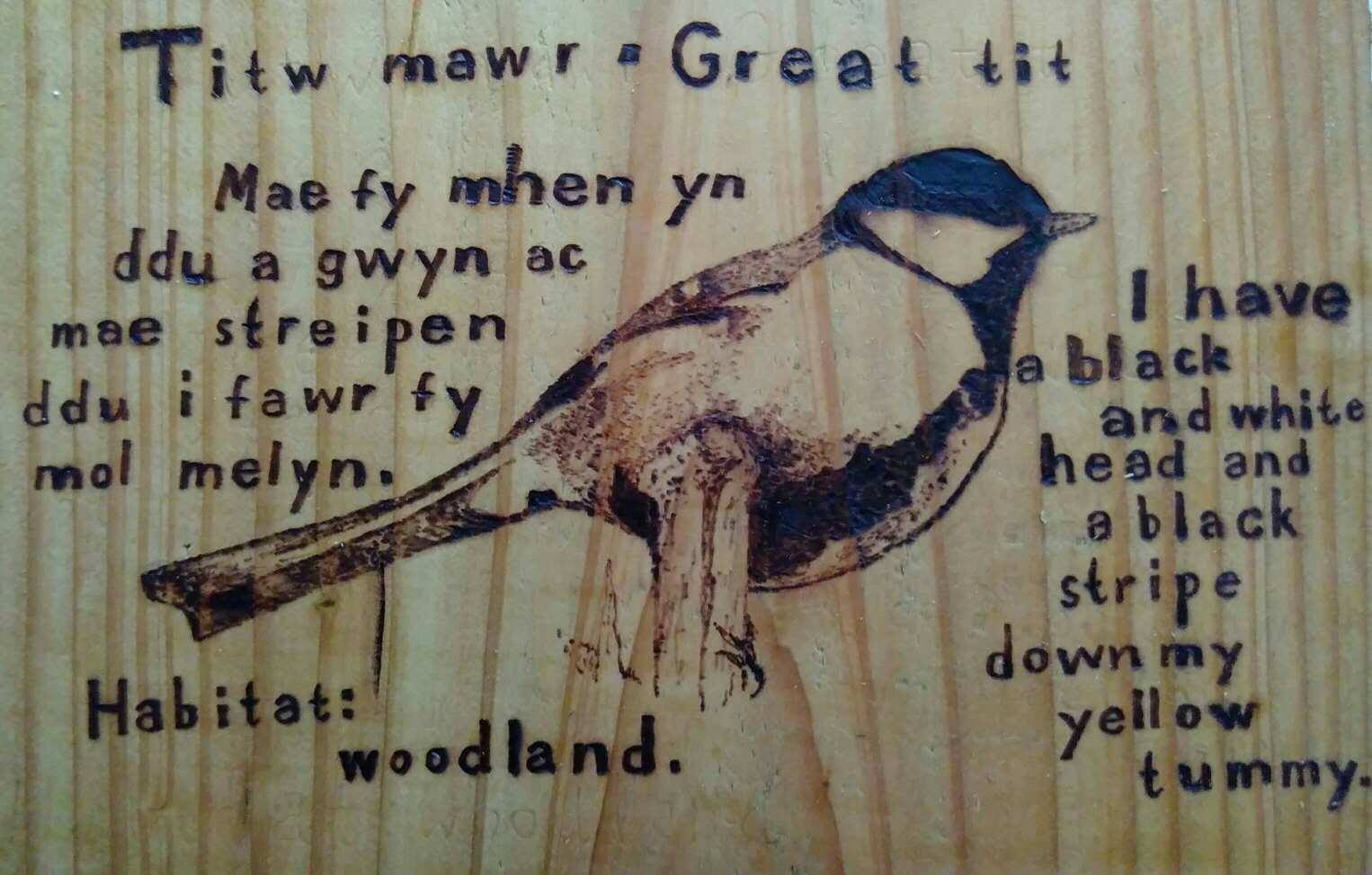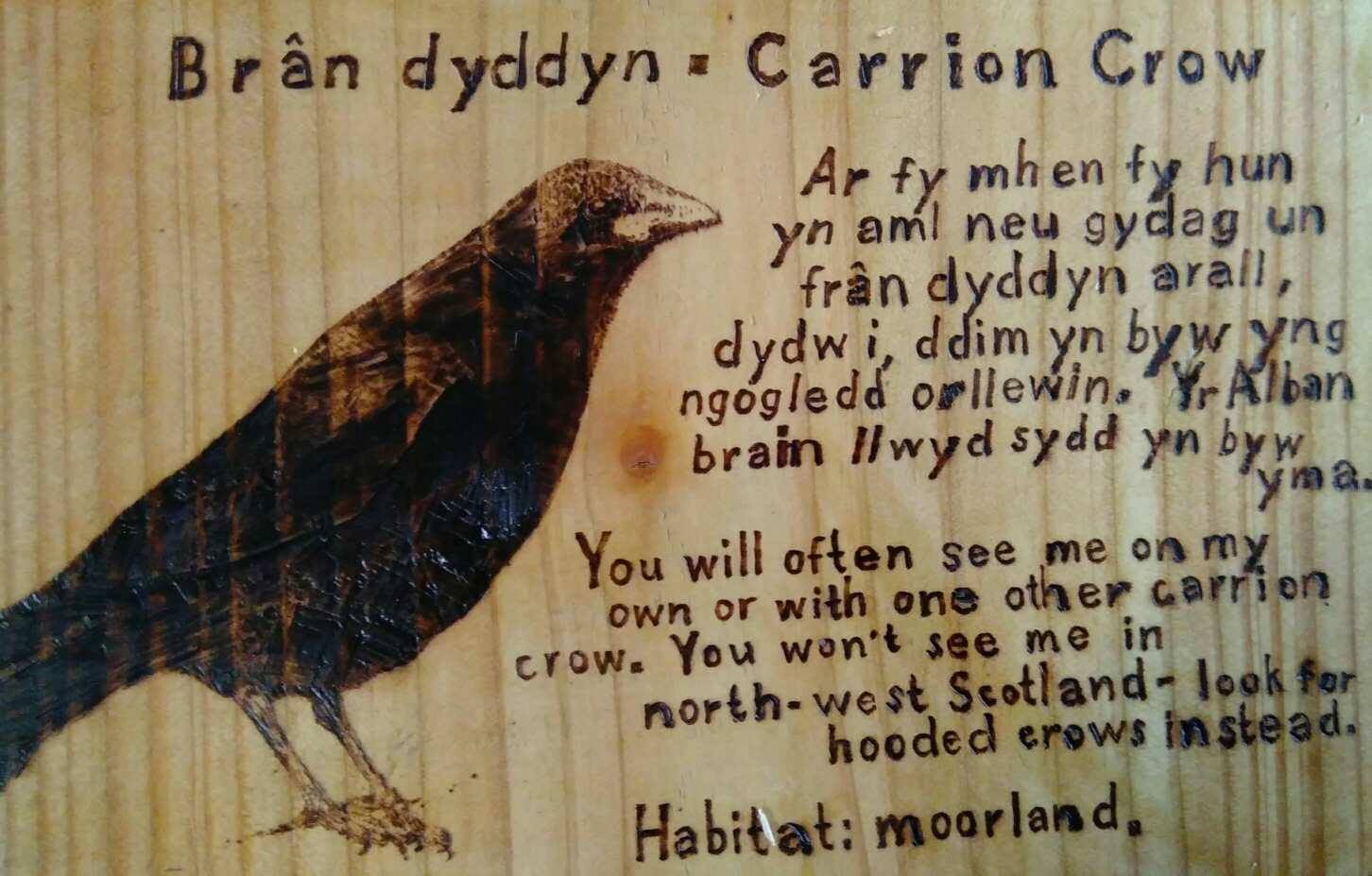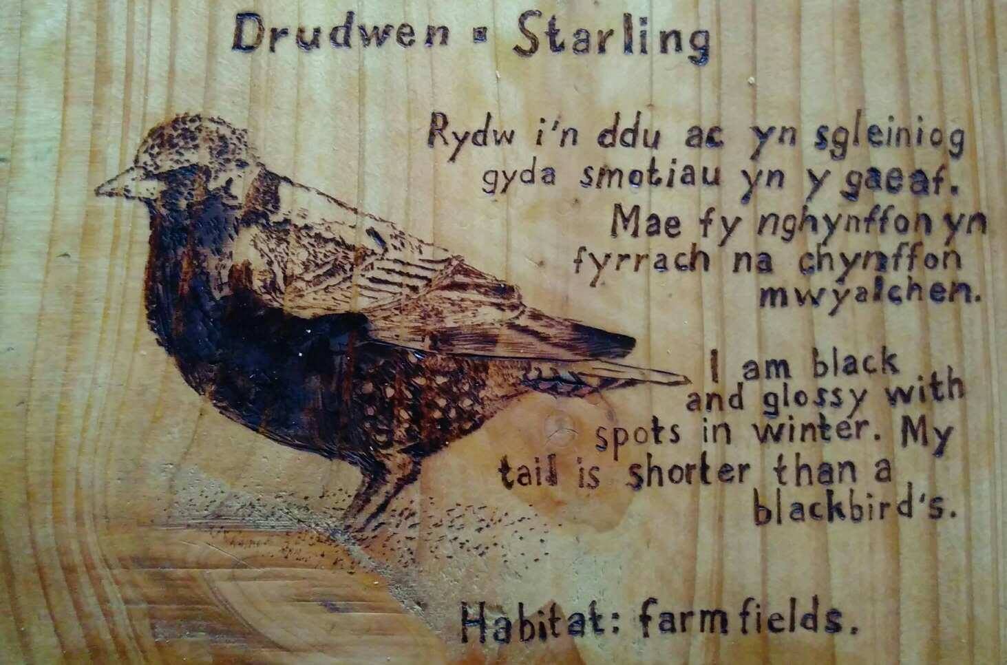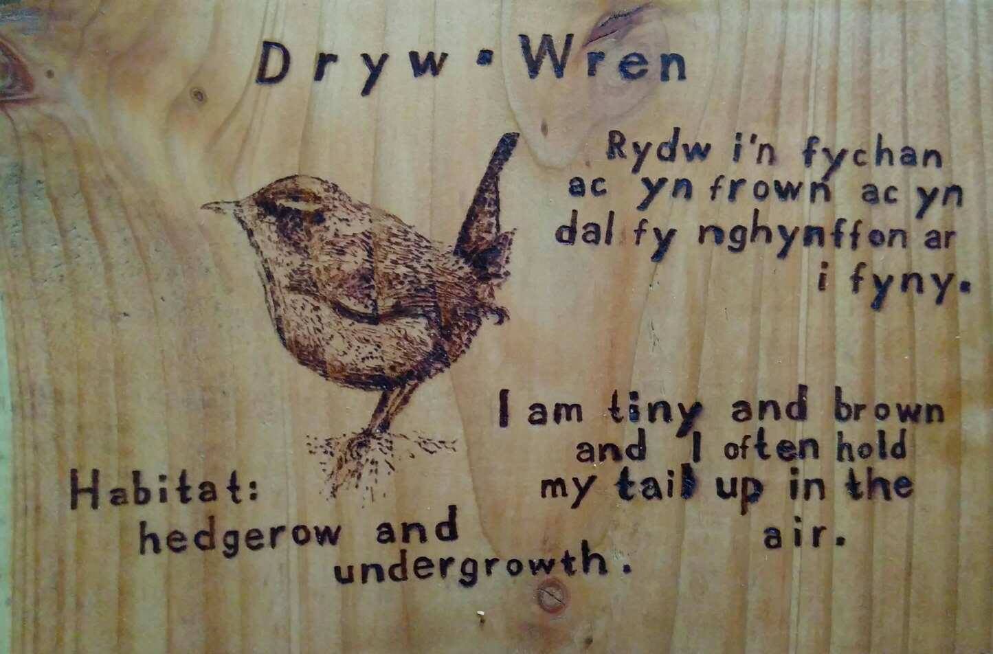 as a resident woodsman at the centre for alternative technology, where the anti-psychogeographer patrick keiller once worked, for six months across the winter i was entrusted to make a, b-ilingual, bird-identification display in collaboration with the rspb (Thank you to supervisors rob goodsell and petra weinmann). each bird went up in a small sitting-booth near the ‘heart’ of the centre, where birds gathered occasionally to be watched by visitors. my friend of the later house of virtue, meg stuart, painted the bird hide nearby, in red and yellow.