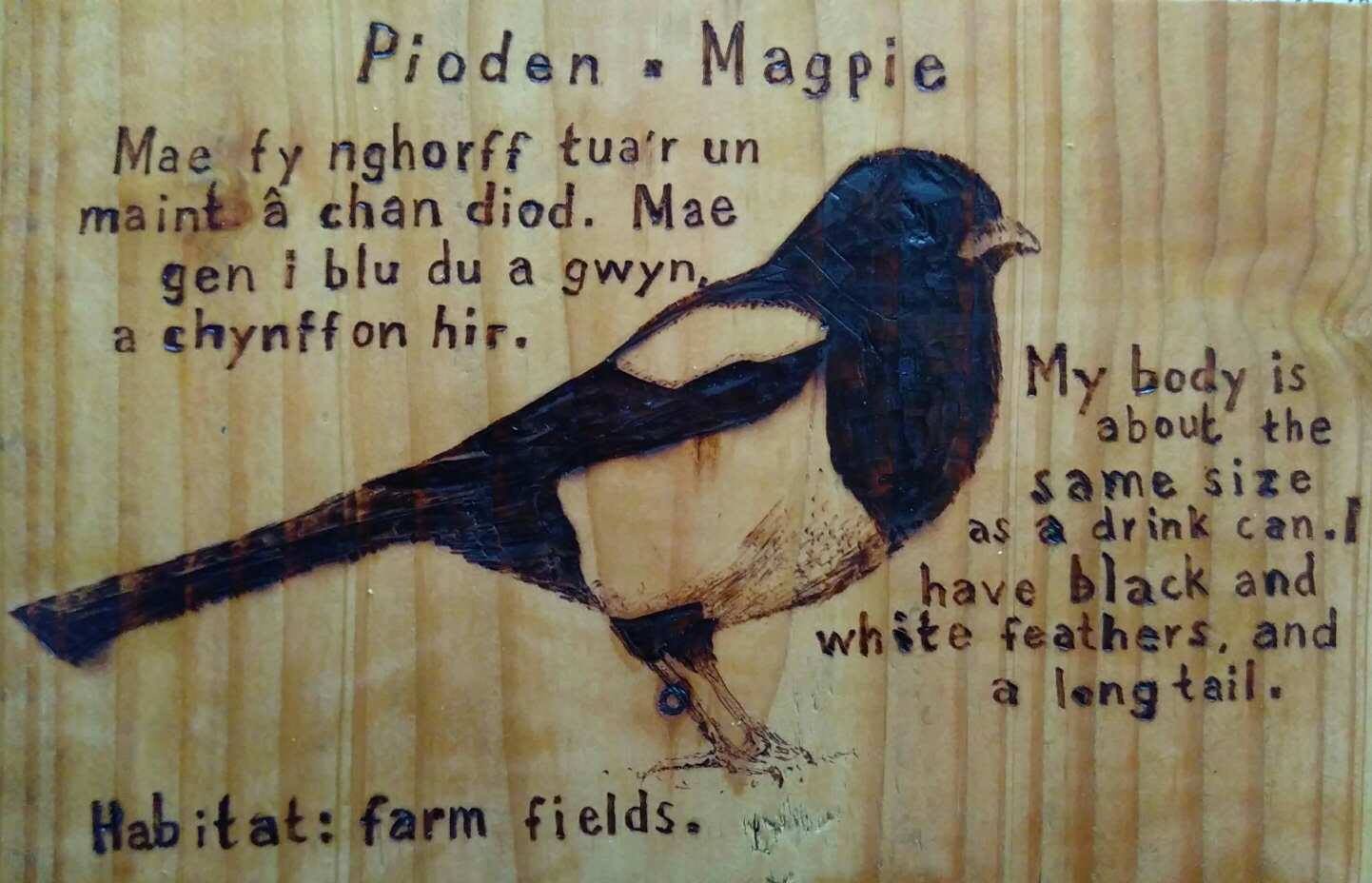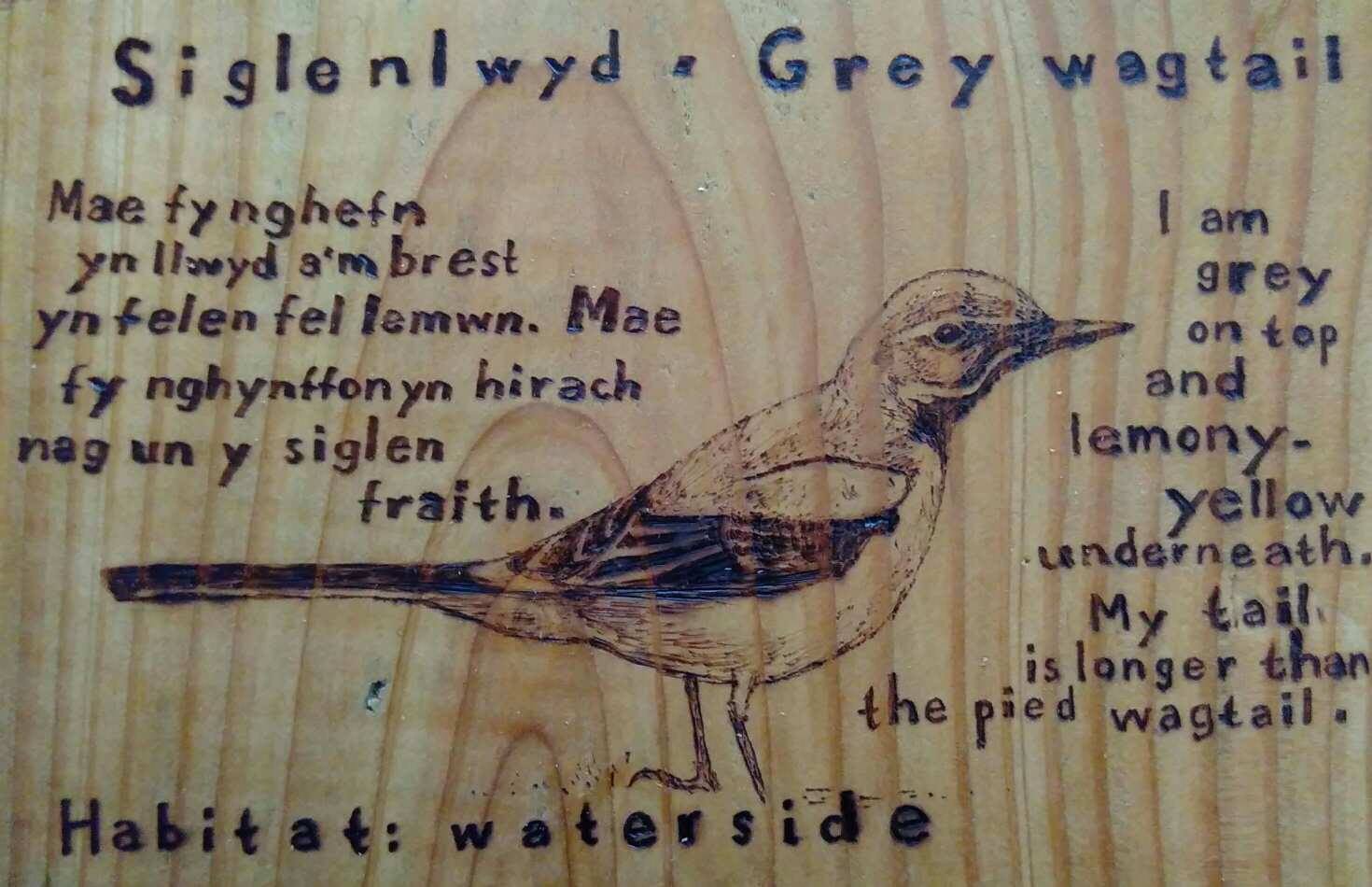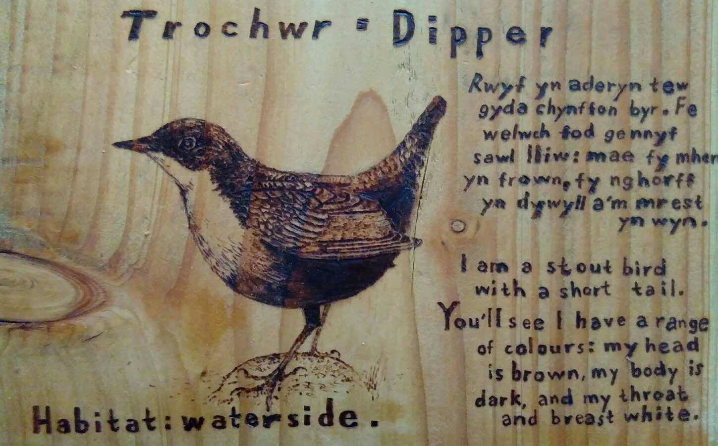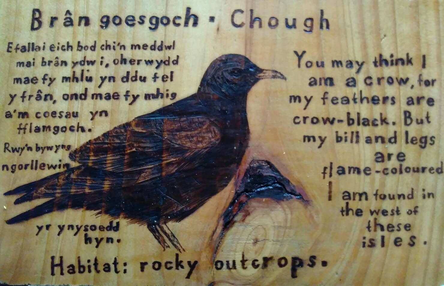 as a resident woodsman at the centre for alternative technology, where the anti-psychogeographer patrick keiller once worked, for six months across the winter i was entrusted to make a, b-ilingual, bird-identification display in collaboration with the rspb (Thank you to supervisors rob goodsell and petra weinmann). each bird went up in a small sitting-booth near the ‘heart’ of the centre, where birds gathered occasionally to be watched by visitors. my friend of the later house of virtue, meg stuart, painted the bird hide nearby, in red and yellow.