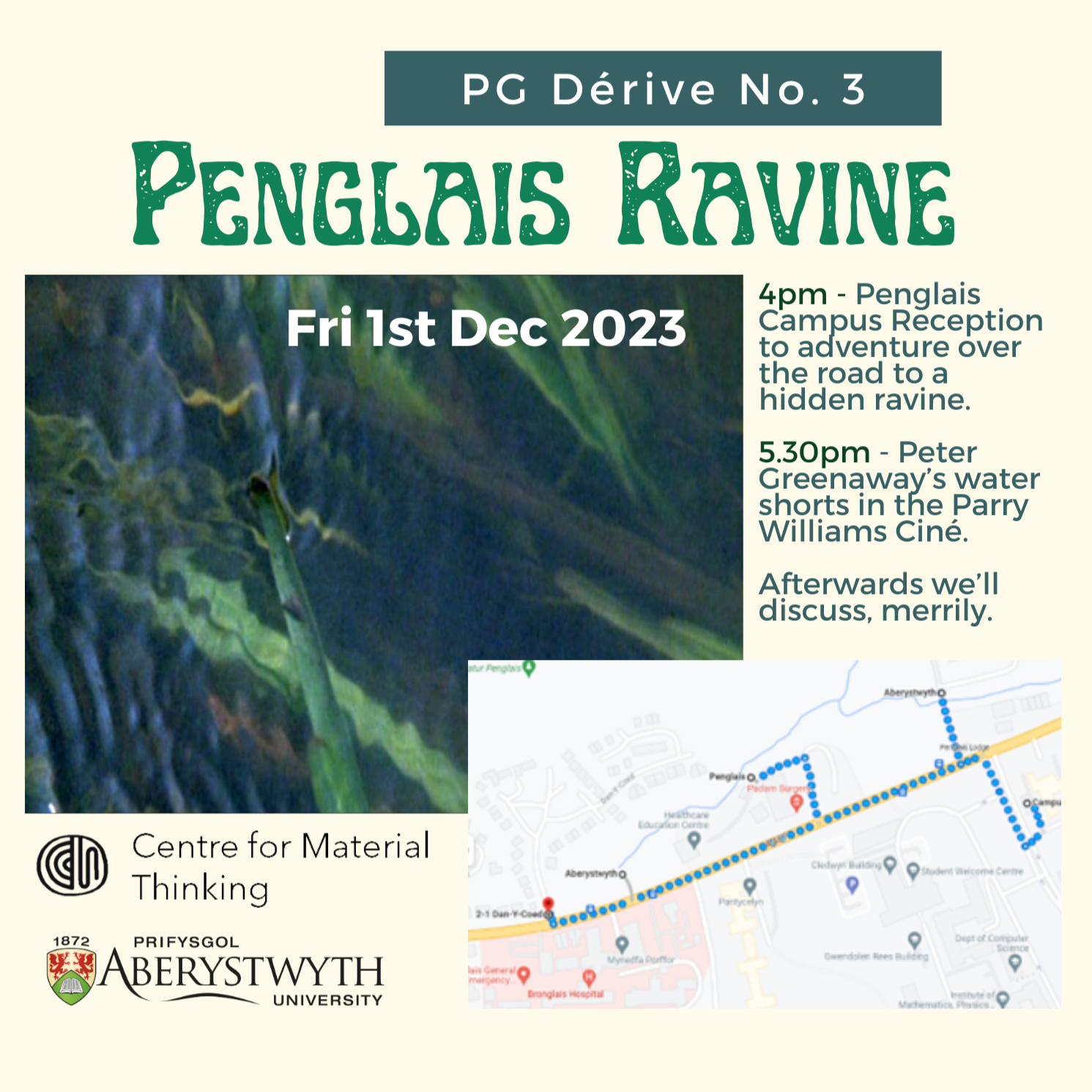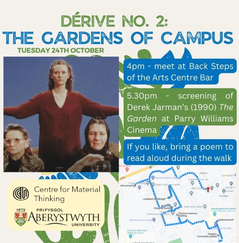 at aberystwyth university with the centre for material thinking, my friend aim king and I PUT ON MONTHLY ‘CAMPUS DéRIVES’ WHICH were REALLY FUN. THEY werE ORGANISED BY THEME, AND WORKed ON the ACADEMIC ANNUAL CYCLE in. YOU CAN FIND OUT MORE ABOUT THE ‘CAMPUS DéRIVES’ VIA think.material on INSTAGRAM.