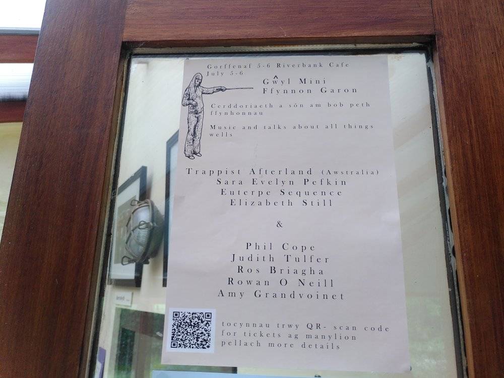 Every year in march it is saint caron’s day in the mid-welsh town of tregaron. Over recent years, dr Dafydd roberts has hosted experimental music occasions there, in honour to tregaron’s saint caron’s well (or ffynnon garon). this july, there was a gŵyl (mini) ffynnon garon symposium, which dafydd invited me speak psychogeographically at. I wrote and performed ‘A Holy Well is at the A485: Ffynnon ❤️ Garon’ about love & care & wells generally, and ffynnon garon specifiically, aside other speakers and musicians: see the full programme here. forget-me-nots were pooling outside the riverbank cafe